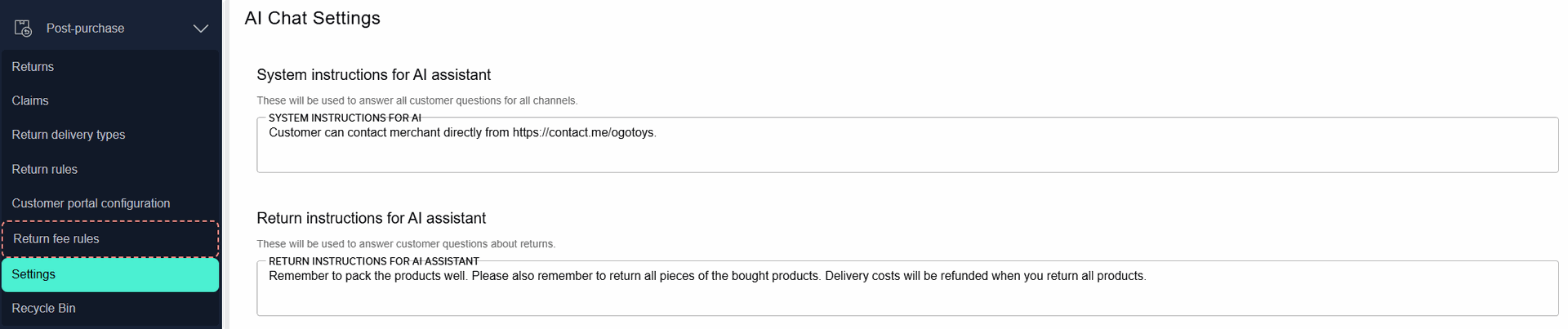 And you can create instructions that will be used to answer customer questions about returns specifically. If you have not enabled OGOship returns, these instructions are not needed.