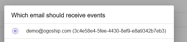 Important note: you can only add email addresses that have been assigned as users in myOGO. If you would like to add e.g. your customer service email address to receive the notification, you need to add that email address as a user into myOGO. See the instructions for adding users. You then need to log in with that user at least once to enable it to be selectable as a receiver of notifications.