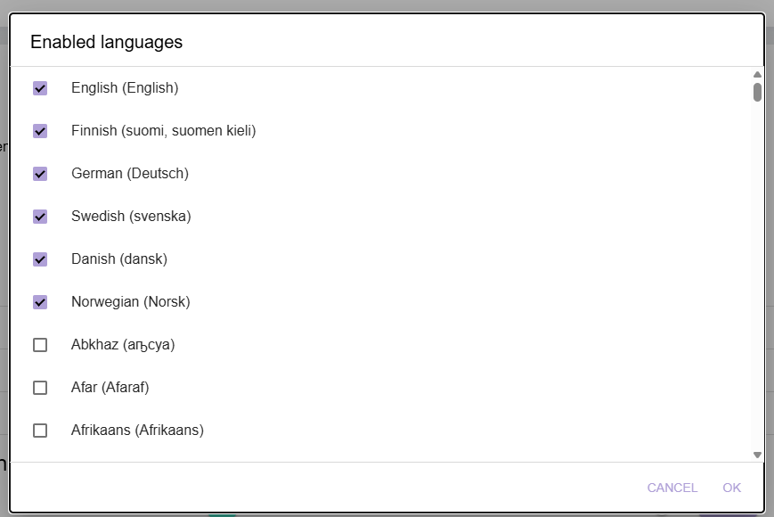 Before turning an email notification on, you need to enable the notification languages that you would like to use. They are enabled above the notification list here: